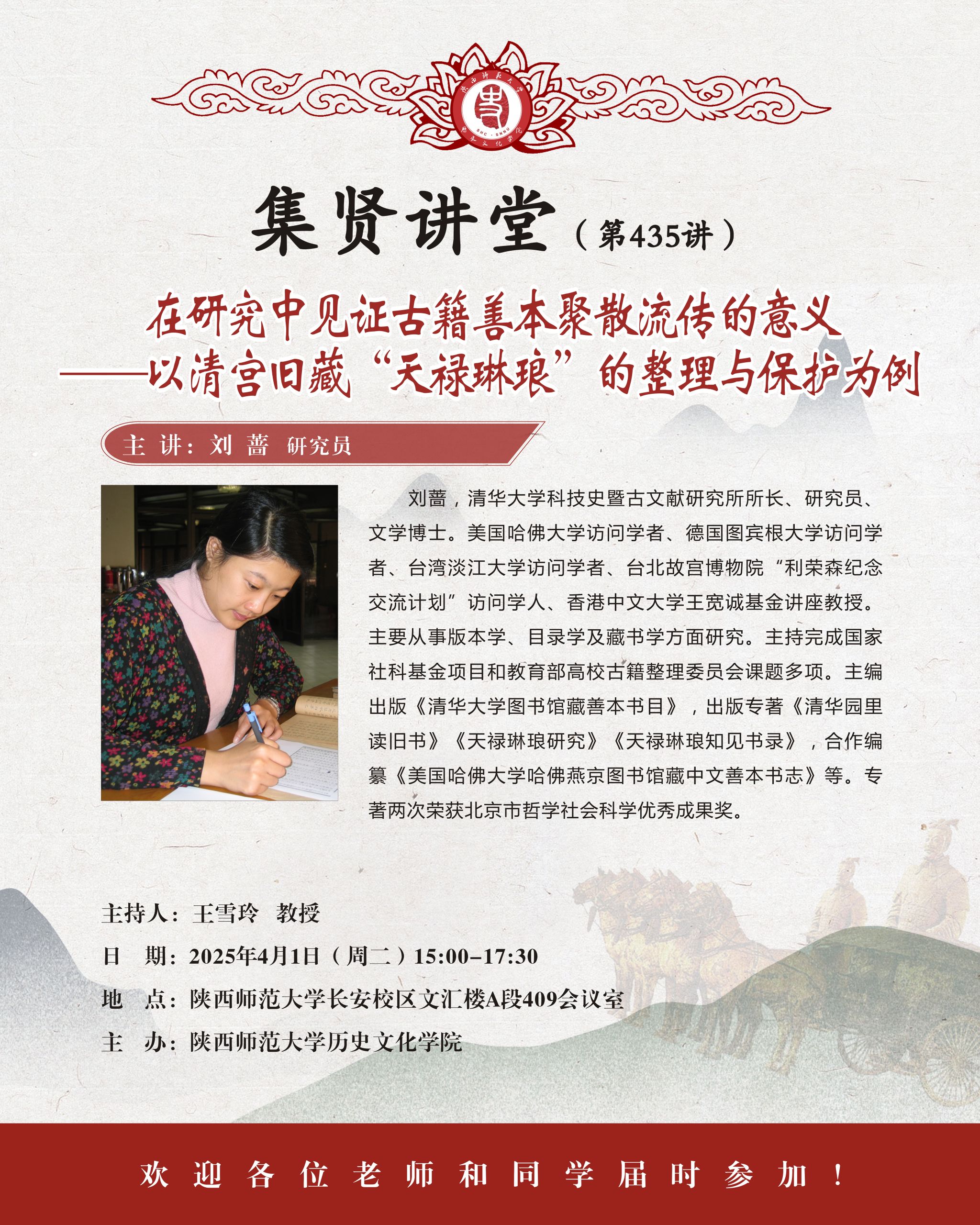 集贤讲堂第435讲:在研究中见证古籍善本聚散流传的意义——以清宫旧藏“天禄琳琅”的整理与保护为例