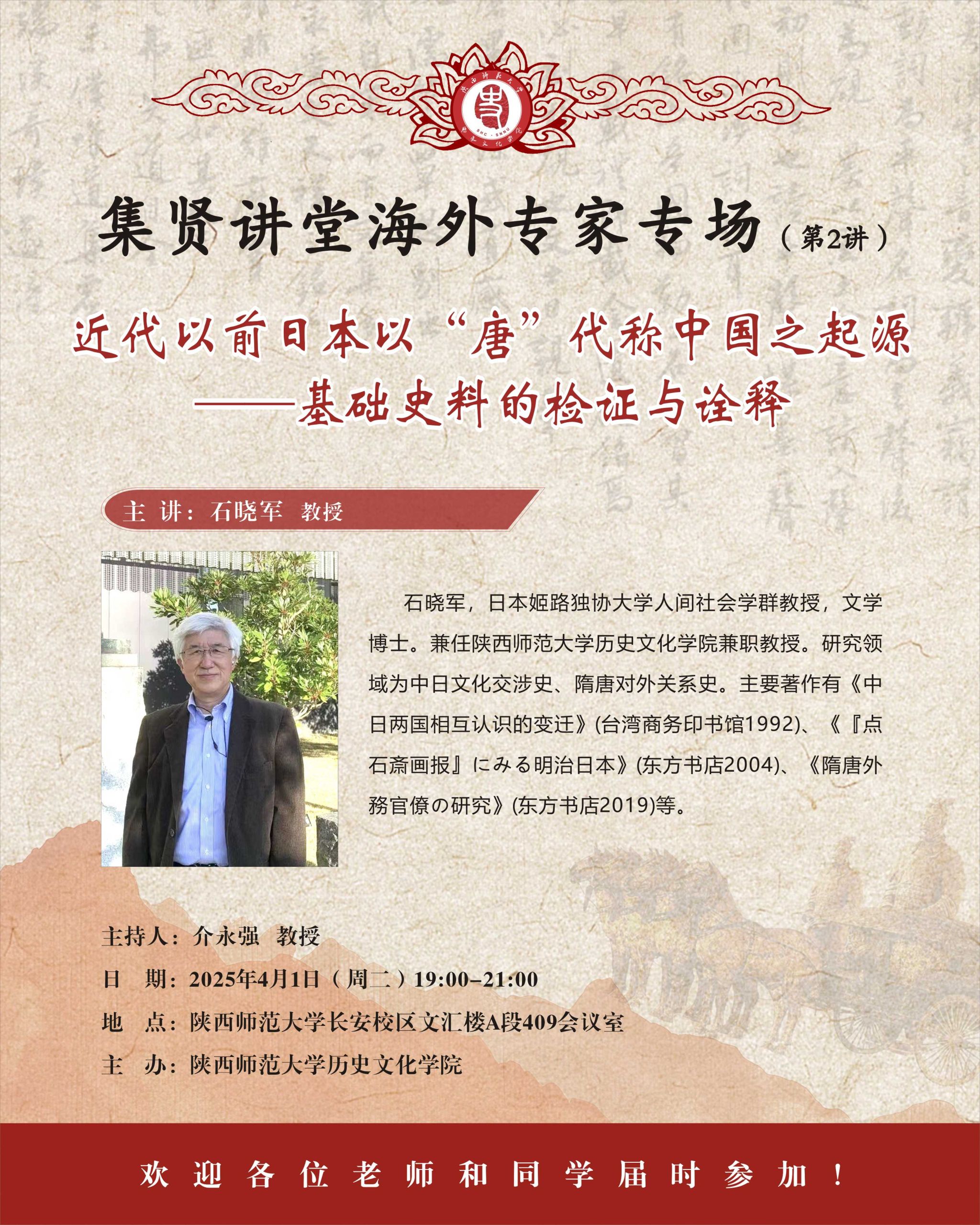 集贤讲堂海外专家专场第2讲:近代以前日本以“唐”代称中国之起源——基础史料的检证与诠释