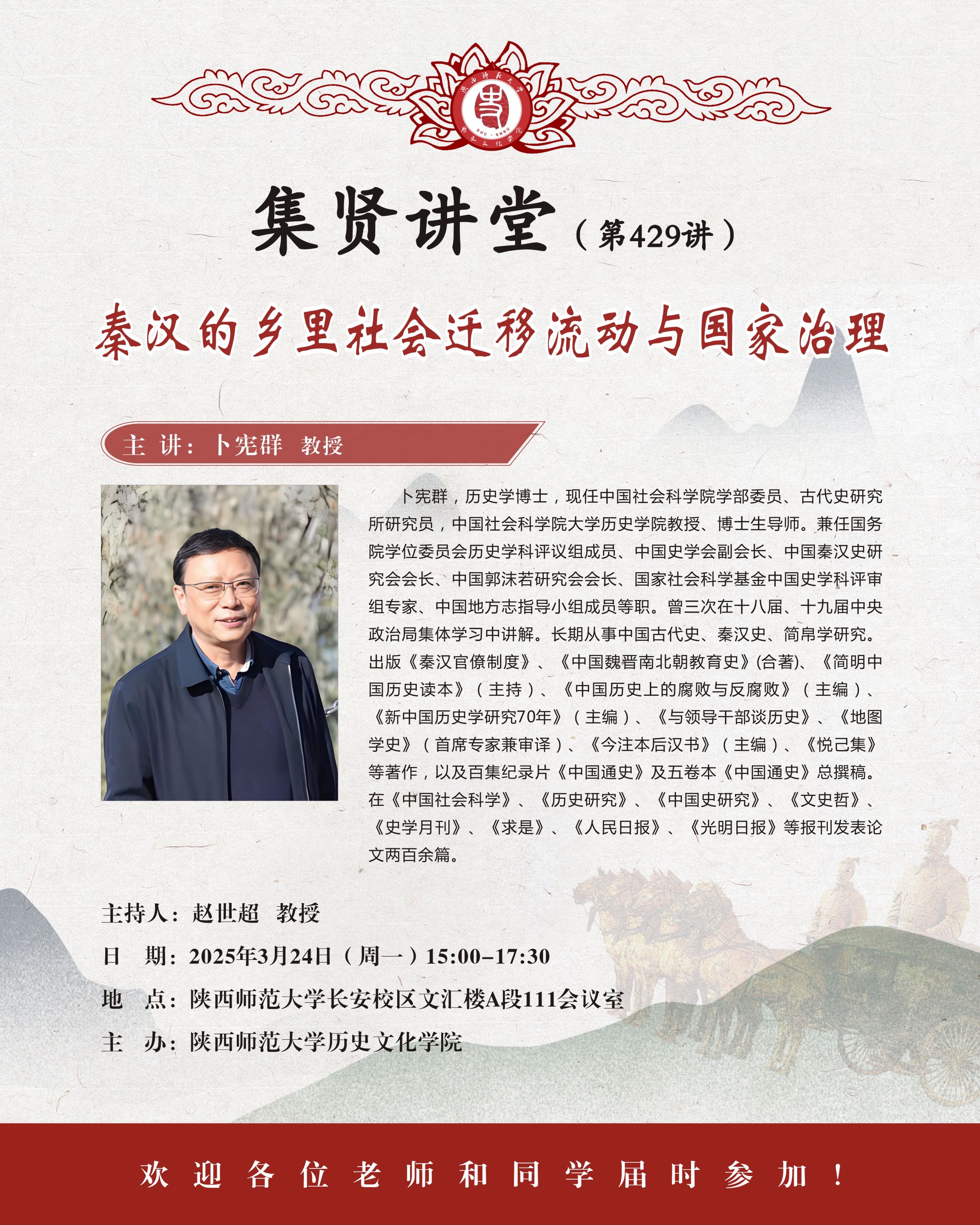 集贤讲堂第429讲:秦汉的乡里社会迁移流动与国家治理