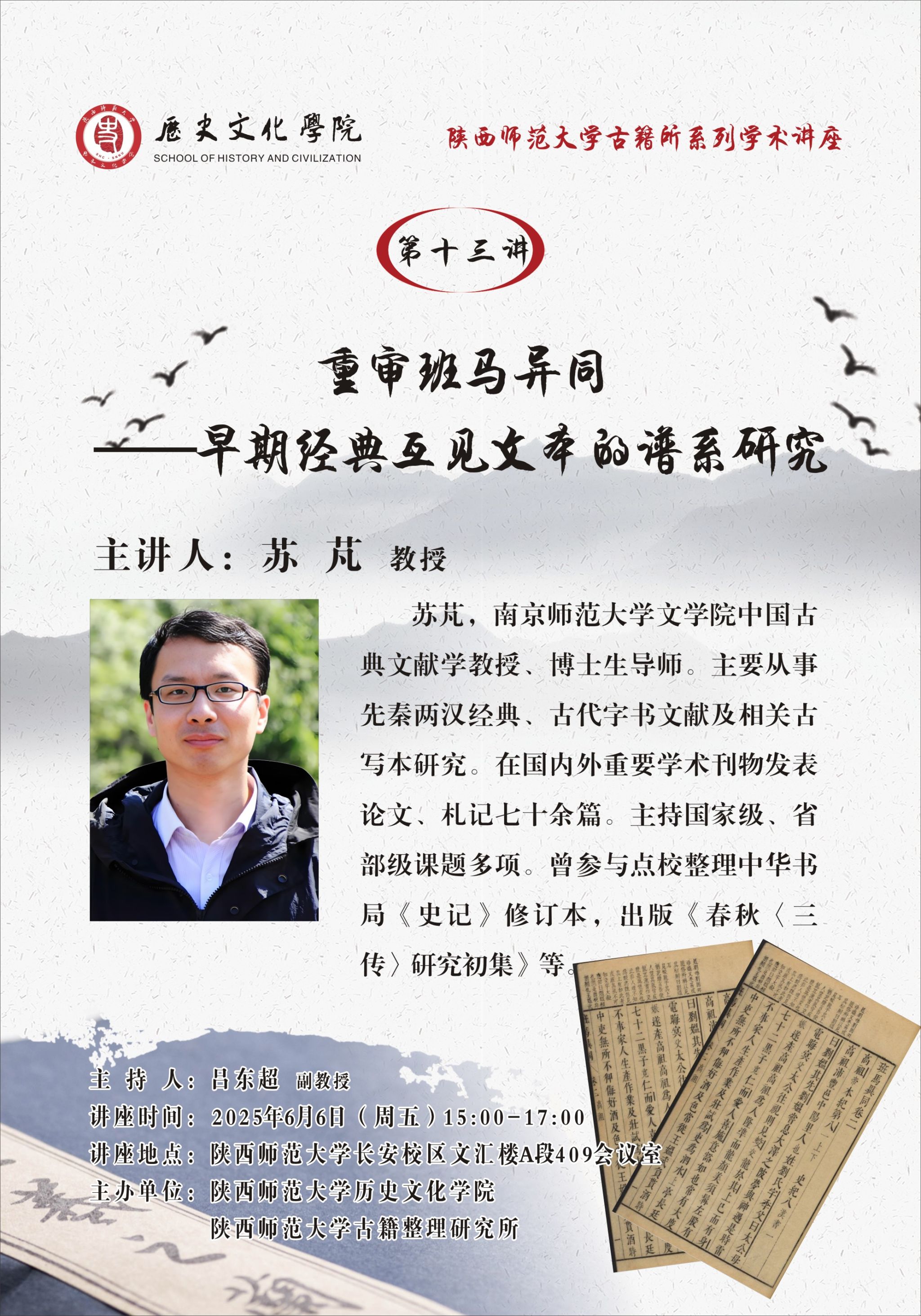MILE米乐中国古籍所系列学术讲座 第十三讲:重审班马异同——早期经典互见文本的谱系研究