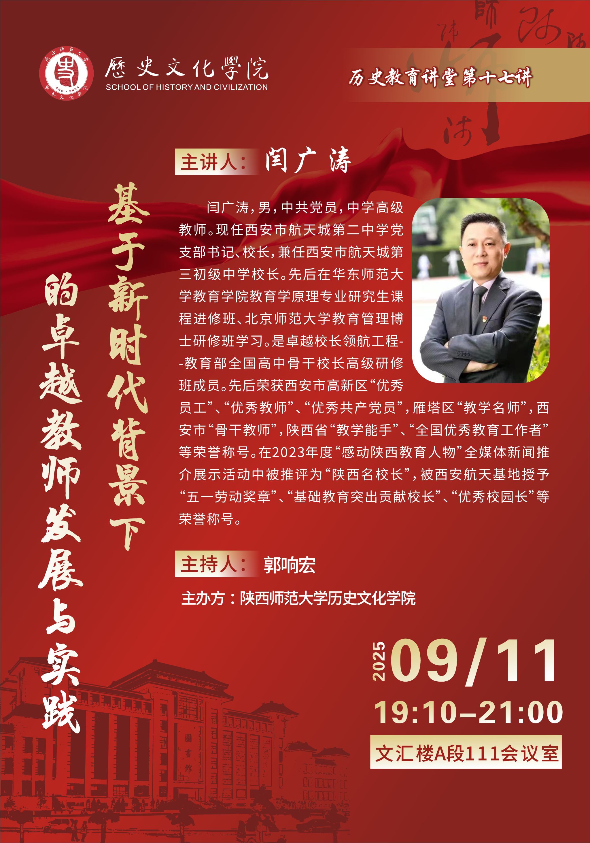 历史教育讲堂第十七讲:基于新时代背景下的卓越教师发展与实践