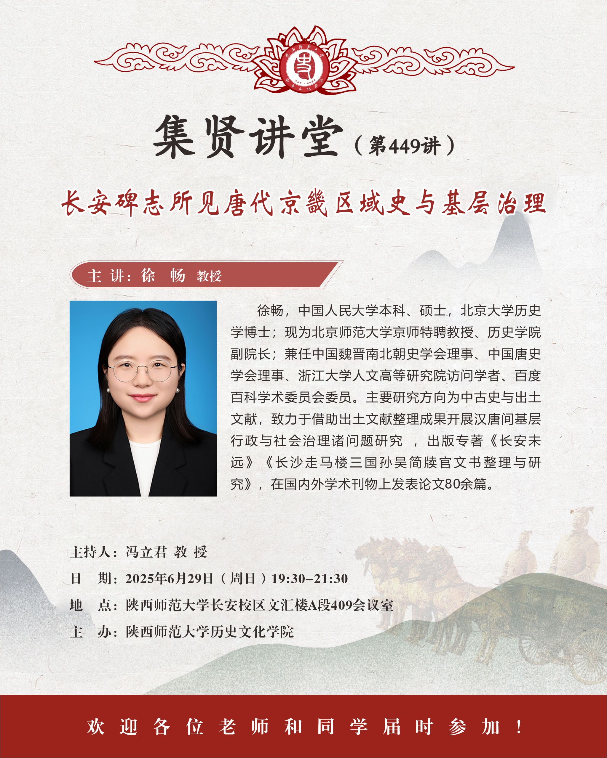 集贤讲堂第449讲:长安碑志所见唐代京畿区域史与基层治理