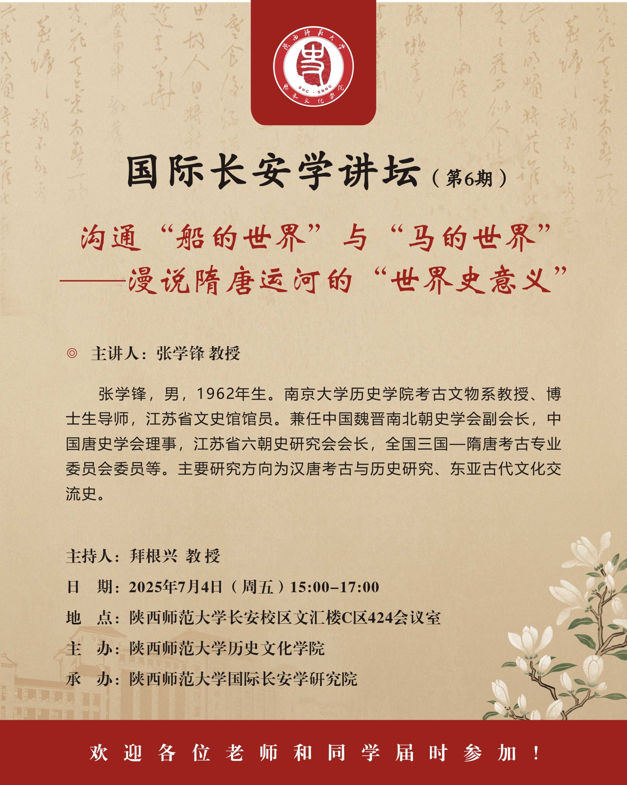 国际长安学讲坛第6期:沟通“船的世界”与“马的世界”——漫说隋唐运河的“世界史意义”