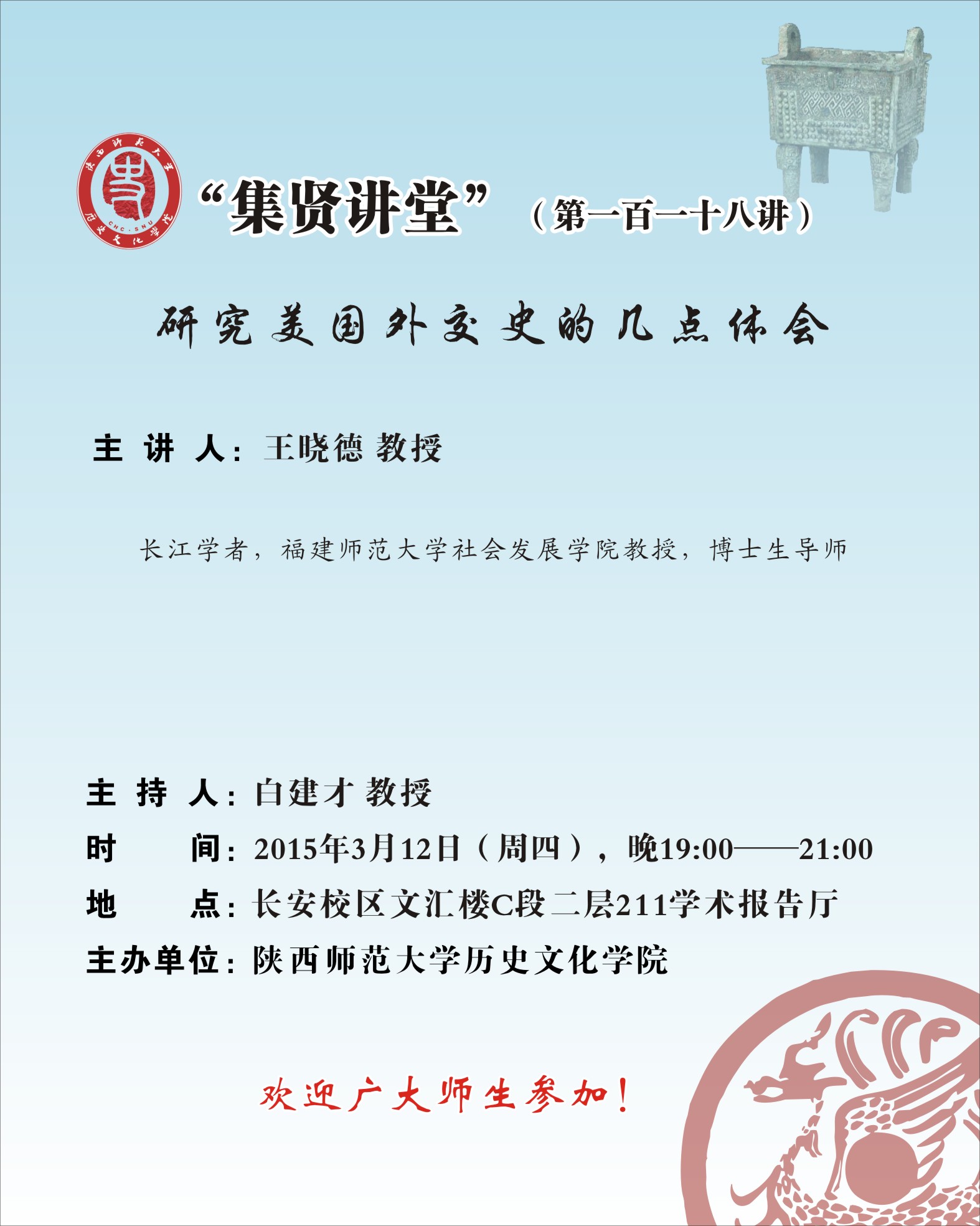 集贤讲堂第118讲:研究美国外交史的几点体会(王晓德)