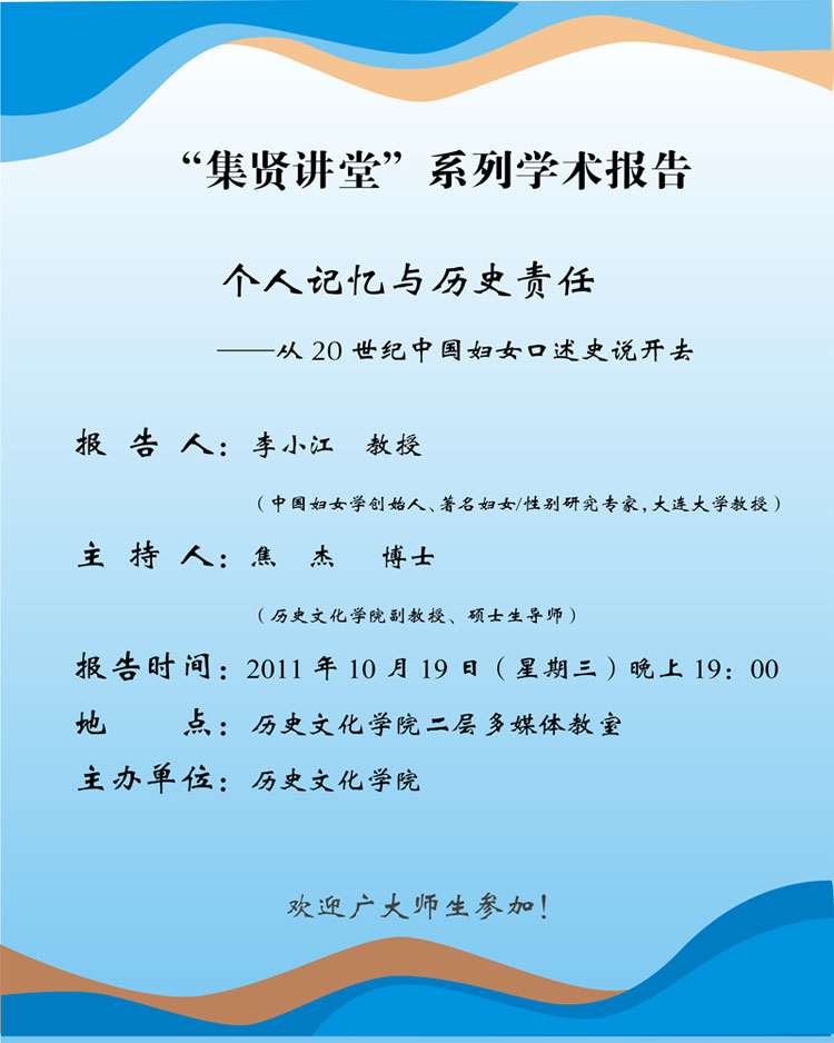 “集贤讲堂”系列学术报告之个人记忆与历史责任---从20世纪中国妇女口述史...