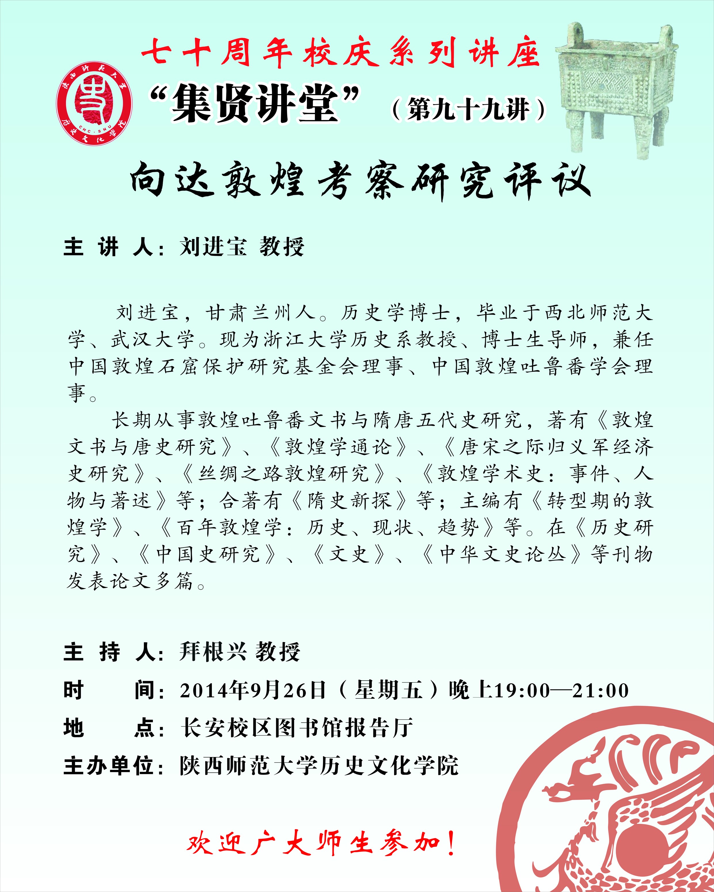 陝西師範大學歷史文化學院 2014年秋季學期中國古代史青年同仁学术沙龍