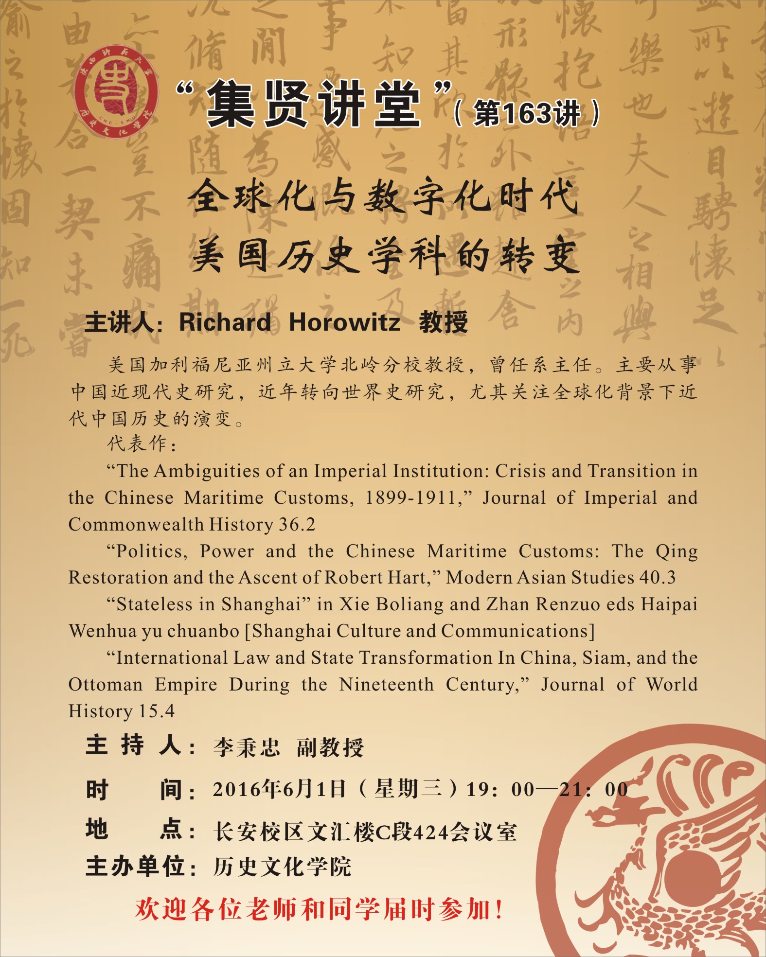 集贤讲堂第163讲:全球化与数字化时代美国历史学科的转变