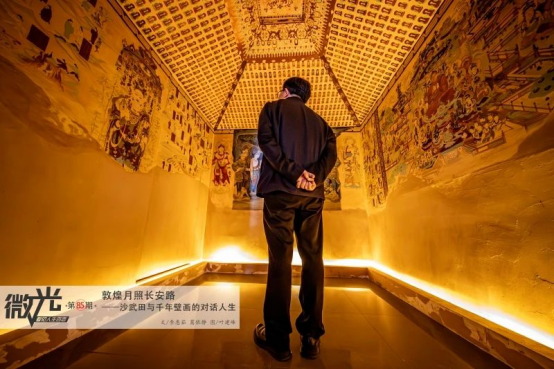 4月18日,陕西网刊发文章《微光丨敦煌月照长安路——沙武田与千年壁画的对话人生》,讲述我院教授沙武田与千年壁画的对话人生。全文如下: 四月的MILE米乐中国长安校区正浸在春光的温柔里。从北门步入,图书馆如一卷展开的典籍矗立眼前,玻璃幕墙上浮动着云絮的倒影。前往文汇楼的道路两旁,花开正好,绿意正浓。而千里之外的甘肃敦煌,此刻该是另一番景象。鸣沙山脊线被阳光染成金箔,莫高窟檐角的铁马在风中叮咚作响,沉睡千年的飞天正欲挣脱斑驳的泥层,...