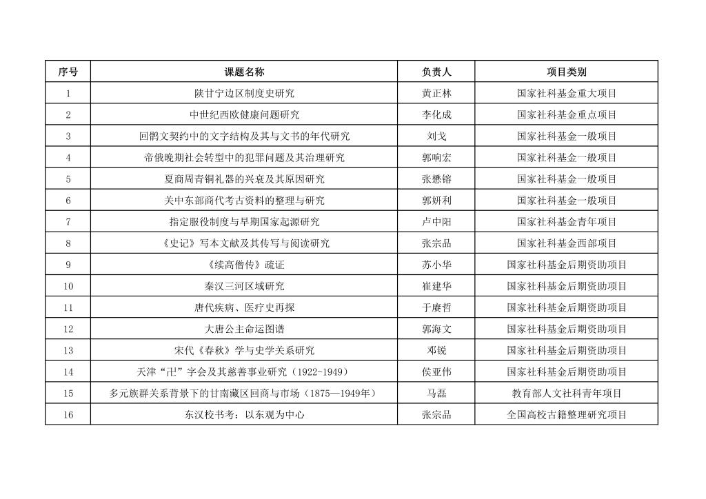 2016年科研项目