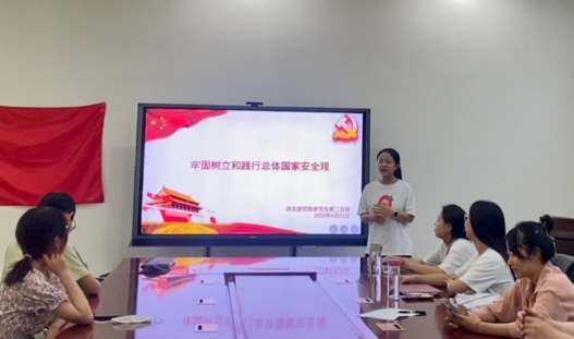 “思所以危则安矣,思所以乱则治矣,思所以亡则存矣。”为了响应国家安全教育日号召,切实提高政治站位,全面贯彻总体国家安全观,进一步推动总体国家安全观入脑入心,引导支部青年党员牢固树立和贯彻总体国家安全观。西北研究院研究生第二党支部于2022年6月22日17点,在教育博物馆西附楼N102室举办了以“牢固树立和践行总体国家安全观”为主题的党日活动,本次活动由支部书记王缘同志主持,支部学生党员代表参加会议。