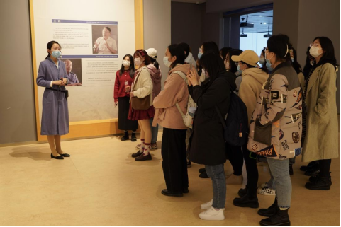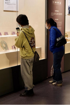 在二里头夏都遗址博物馆,同学们认真倾听讲解员解说