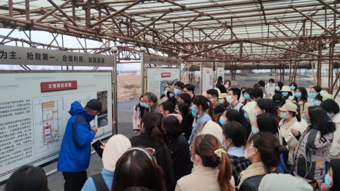 本次考察的第一站是天子驾六博物馆。博物馆原址原状陈列展示的是西区6号马坑和中区5号车马坑。这座天子驾六车马陪葬坑的发现,揭开了古代天子驾六、驾四的千古疑案,为研究东周时期的丧葬制度、乘舆制度,以及确定东周王城的王陵区和城市布局提供了全新的考古资料,成为21世纪东周考古的重要发现之一。同学们在这里体会到了“东周瑰宝,举世无双”的风采。