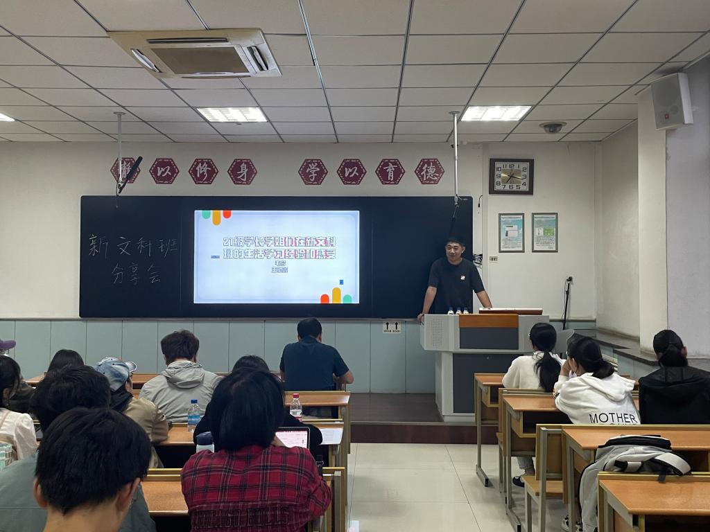 随后,21级新文科班毛梦、王驰鑫分别分享自己过去两年在新文科班学习和生活上的经验建议和感受,用自己在两年内的变化让同学们深刻感受到了新文科班建立的意义。也当场解答了同学们关于学业,研究,政策上的疑惑。