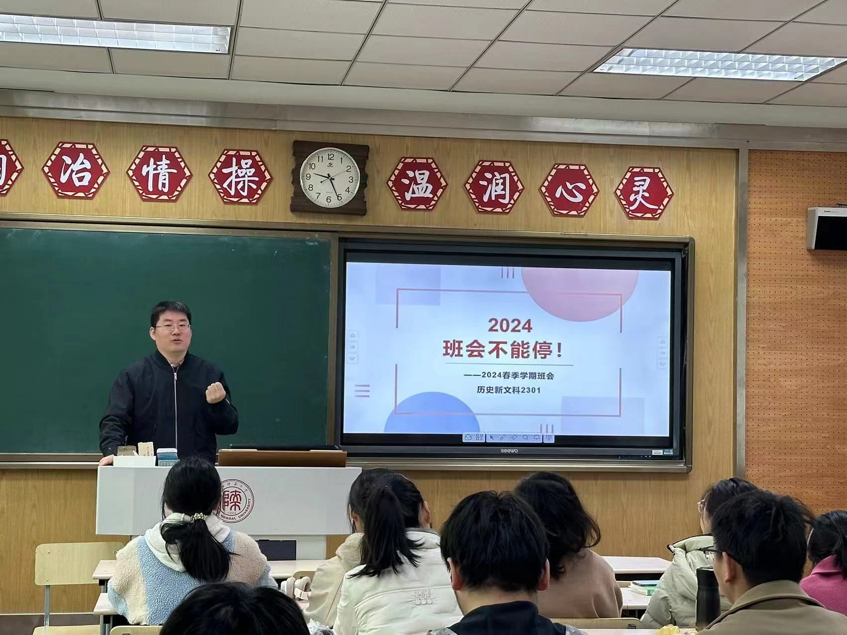 见面会上,冯立君谈到学校作为教育部直属师范类高校,拥有丰厚的学术资源,能够助力优秀人才的培养。新文科班作为受学院重点关注、由优秀学生组成的学习团体,应该拥有更加积极的精神风貌和更为浓厚的学习氛围。并对同学们提出三点要求:一是要坚守初心,持之以恒,通过广泛学习打好基础;二是要合理规划,高效实施,不断提高个人能力素质;三是要保持热爱,积极活跃,培养问题意识。冯立君以自身学习经历为例,为同学们树立榜样,强调大学生不仅需专注于专业学习,也需注重社会实践,全面培养个人能力,适应新时代的人才要求。张迪对同学们提出期望:希望同学们坚守选择新文科班的初心,充分利用学校给予的优质平台和资源,实现更好发展,努力成为专业领域的杰出人才。