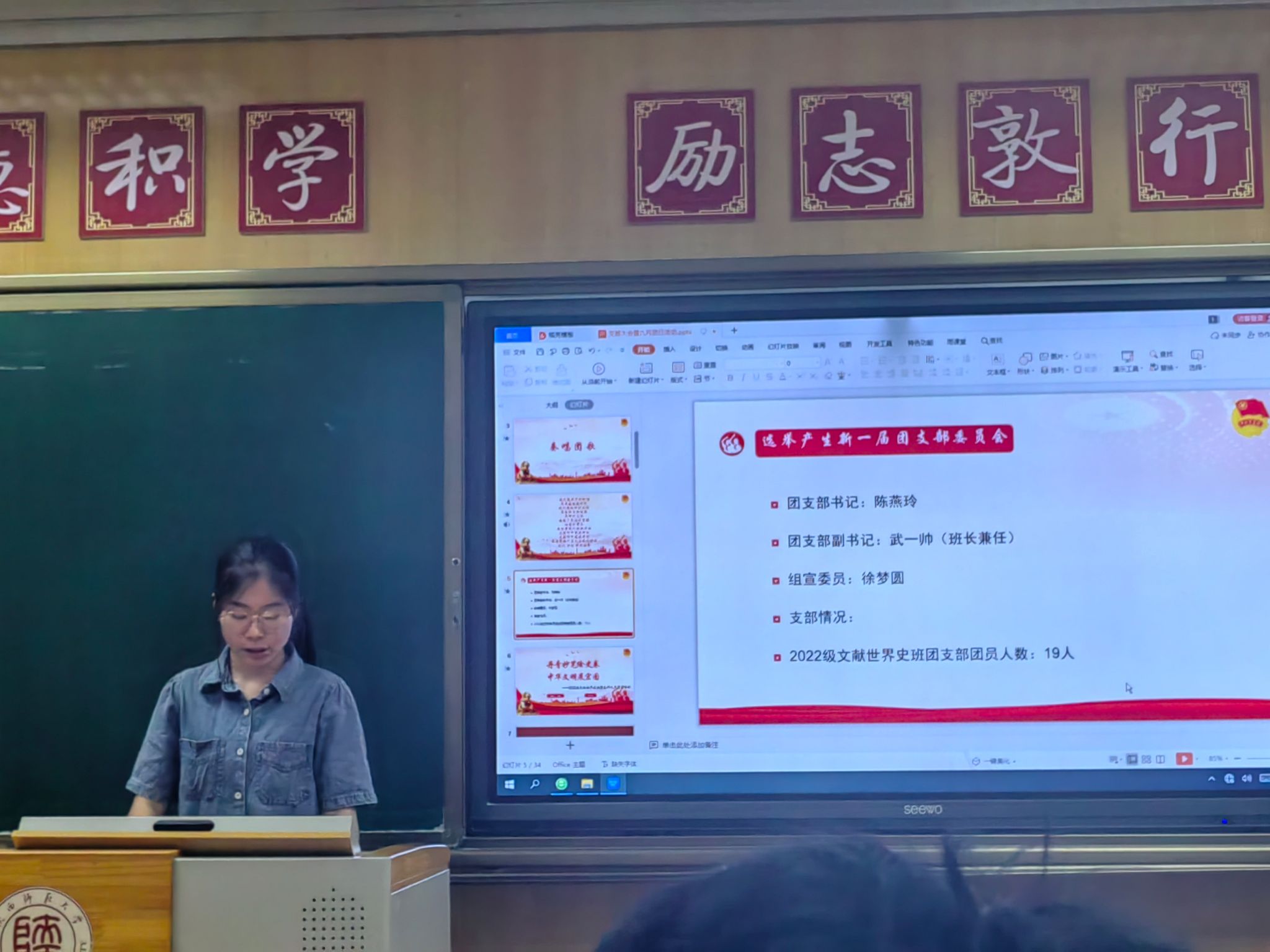 9月23日,2023级历史学(师范)班团支部开展“红烛映八秩 躬耕铸梦行”主题团日活动。支部成员共同回顾我校的建校历史,理解校训的深刻意义。通过邀请几位同学分享讲述“寻找我身边的好老师”活动心得,支部成员更深刻地领悟到“学高为师,身正为范”的真谛,坚定了“西部红烛 两代师表”精神,深植“到西部去,到祖国需要的地方去”的坚定信念。