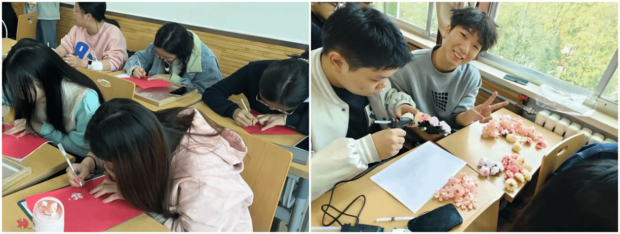 10月24日,2022级历史学(优师计划)2班团支部开展了“民族心连心,文化韵古今”主题团日活动。团支书组织支部成员观看相关教学视频,相互交流,分享创意,进行簪花和剪纸手工制作,不仅体验到手工制作的乐趣,更学习到剪纸与簪花背后的民族文化知识,增进对中华民族优秀传统文化的理解。