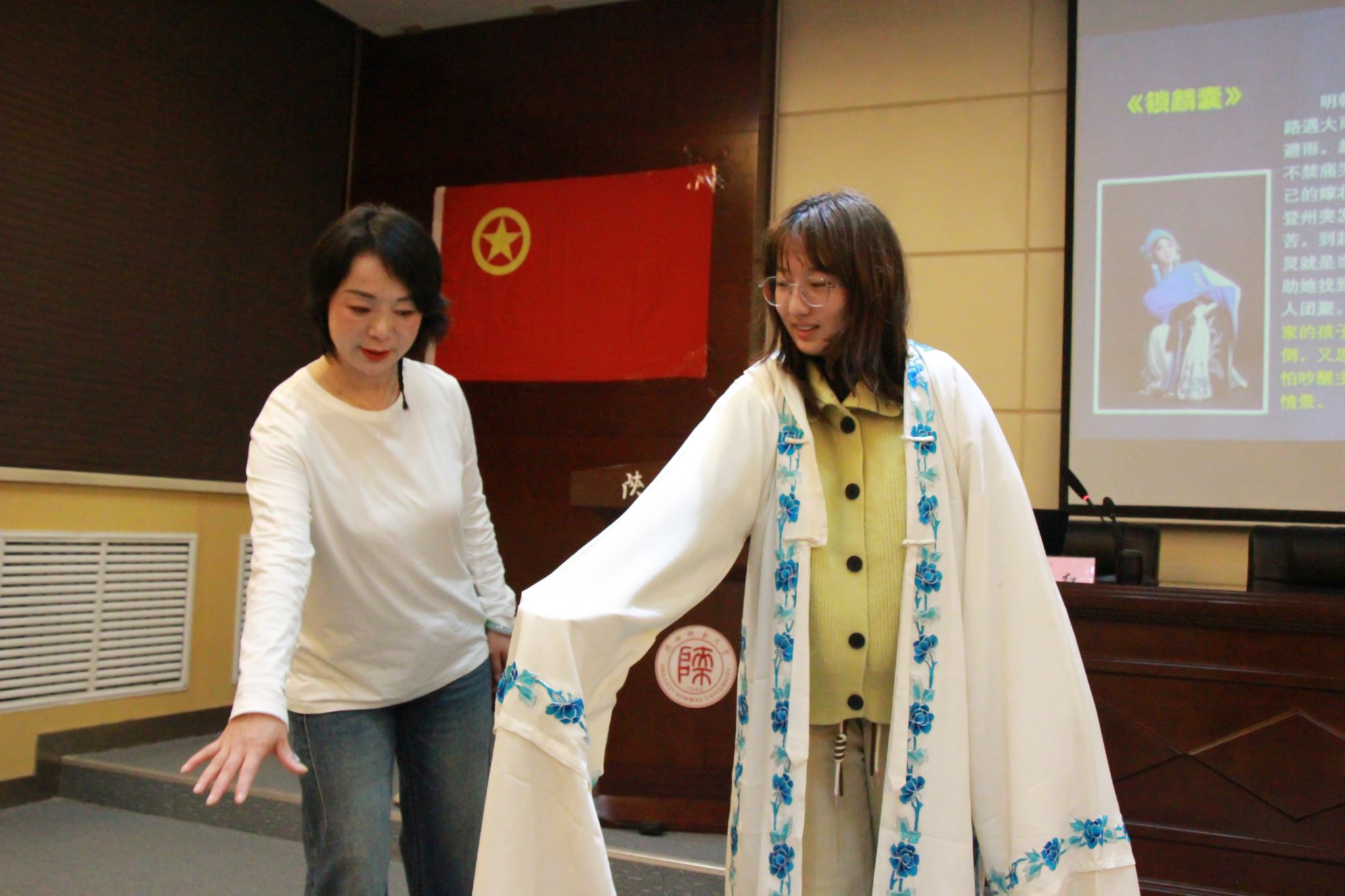 培训第二讲,陕西省戏曲研究院文艺工作者、国家二级演员、陕西省艺术研究会会员段红主讲,学院副院长郭响宏主持。本课以“秦腔艺术与中华优秀传统文化传承”为题,介绍秦腔的概况、行当、服饰妆容、唱腔与表演等,在座同学进行了现场体验。郭响宏总结陈词,他指出秦腔作为一种传统的艺术形式广泛流传于西北大地,以秦腔的传承为例,中华优秀传统文化的传承需要青年人的广泛参与与探索创新,让经典艺术在新时代再次释放活力。