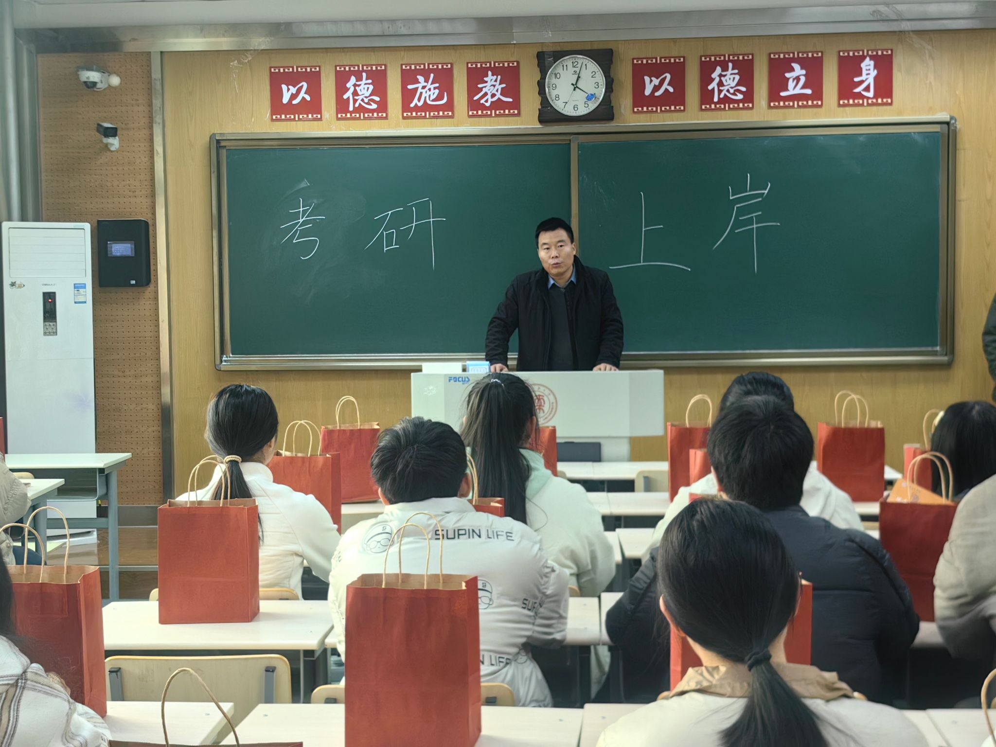 孙伟书记向全体考研同学表达了深切的关怀与期望,结合往年情况分析了今年的考研形势,寄语同学们在进入考研倒计时的日子里积极调整状态,规律作息饮食,注重劳逸结合,以坚定的信心迎接考试,努力实现学业抱负,向着更高的人生目标前进。