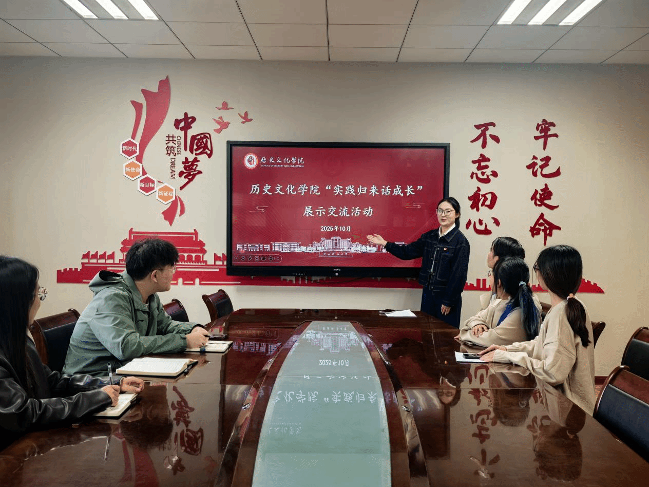 在暑期社会实践分享中,同学们从不同角度讲述了各自的经历与成长。有的同学深入文化领域,通过参与文物修复、策展等工作,深刻体会到物质与非物质文化遗产在传承中的紧密联系,并将把这份领悟用于今后的学术研究。有的同学通过参访革命圣地,完成了从军人到学生的心态转变,重新找到了个人奋斗的意义。另有同学致力于家乡文化推广,通过实体书店与线上平台,以创新方式推动本地历史与传统文化传播。还有的同学扎根乡村,通过基层政务实践加深了对乡村工作的理解,进而坚定了投身乡村教育事业的理想。