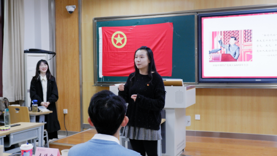 在文艺汇演中,支部团员们以歌舞《共和国之恋》的悠回婉转、方言三句半《百年》的异语同心、诗朗诵《青春中国》的激情澎湃,深切表达了对党和祖国的热爱。在红歌竞猜环节,一首首富有年代感的红色歌曲生动演绎了中国共产党百年的光辉历程,展现了同学们的党史知识学习成效,并结合专业讲解,带领同学们回顾了中国共产党筚路蓝缕、奠基立业的百年历程。
