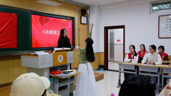 活动伊始,支部团员们起立合唱团歌并一同观看了《错位时空》五四特别版视频。在歌声中,大家重回百年前的激昂岁月,瞻仰缅怀以青春之我献身祖国革命事业的青年英雄,以今日中国之和平繁荣,以接力祖国发展之使命担当,以“这盛世如您所愿”告慰英灵,砥砺初心。
