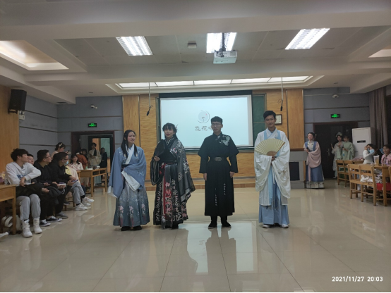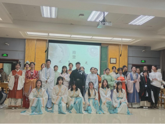 活动当天上午,社团于喷泉广场开展了成人礼知识校园问答活动,同学们广泛参与,为晚上的活动做好了铺垫与宣传。晚上19时,活动于教学五楼5301教室正式开始。歌舞、戏曲、茶艺节目表演,“飞花令”比赛以及汉服汉礼、女子成人和笄礼展示等,为现场的同学们带来了一场沉浸式的成人礼演出,引导同学们在感悟优秀传统文化的同时关注自身成长,在学礼明志中早日成才。同时,活动还邀请到了多个友社的合作参与,狂龙武术协会的剑舞表演、紫云相声社的相声《学哑语》、秦风诗社的诗朗诵《橘颂》等一同为活动增添了更多的内涵和乐趣。除此之外,活动还设置抽奖互动环节,为同学们赠送精美的国风文创礼物,增添了活动的氛围。最后,伴随着大合唱《不负时光》活动圆满结束,同学们在歌声与笑容中合影留念。