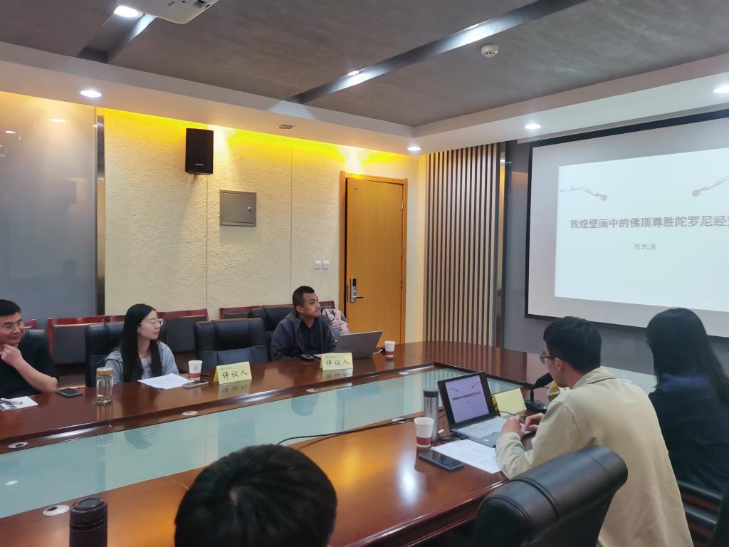 2023年5月13日晚,我院研究生“日新论坛”第一百七十一讲在长安校区文汇楼C段424会议室举办。本次论坛讲座目为《敦煌壁画中的佛顶尊胜陀罗尼经变》,主讲人为22021级博士研究生陈凯源,我院魏健鹏老师及2020级博士研究生吴雪梅对其进行评议。论坛由研究生会学术部干事姚云琳主持。