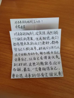 “他强任他强,清风拂山岗;他横任他横,明月照大江。”同学们的留言中流露着对彼此的关怀,也体现出日渐强大的心理素质,更加有效地推动了此次活动目的的实现。通过本次心理班会,同学们近期积攒的负面情绪得到了有效宣泄,焦虑也有所缓解。吐露真心带来的心情舒畅使同学们纷纷表示,希望能将“树洞”活动延续下去,帮助大家更好地平衡心理,健康成长。