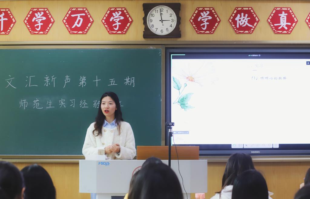 提鸿畅以“实习经历与应聘感受”为题,结合自身经历,详细介绍了如何从不同方面考虑和选择实习学校,强调实习信息流动的重要性以及实习时的心态问题,着重分享自己的实习心得,从备课到讲课再到听课,全方位展示了实习生活。