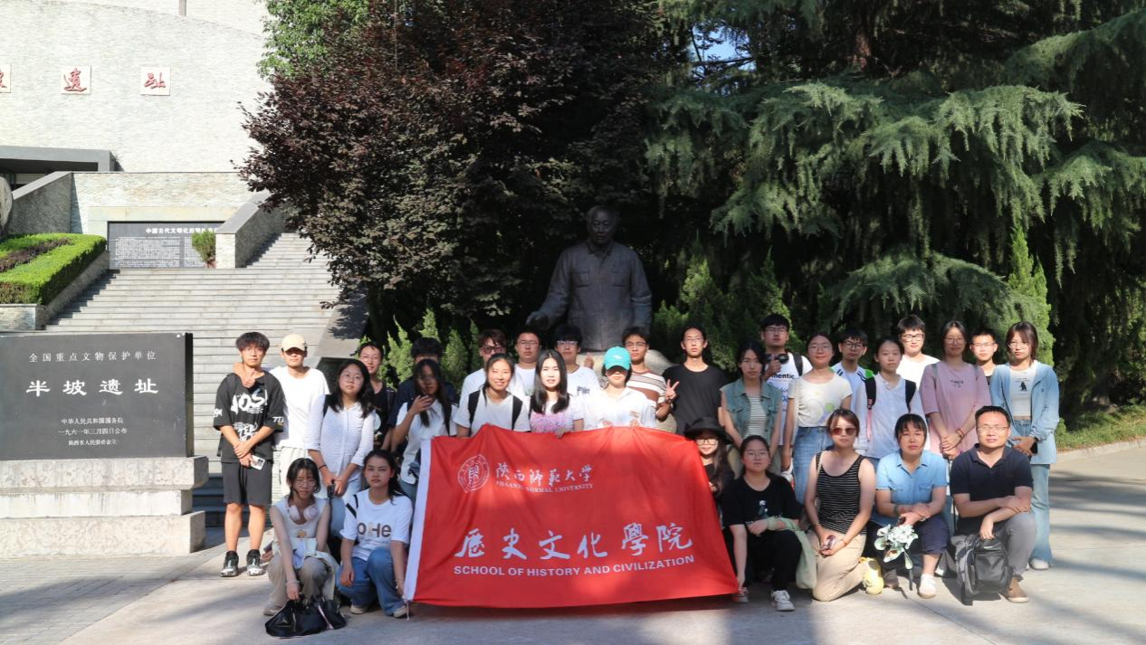 6月21日,同学们前往秦始皇兵马俑与秦始皇帝陵博物院考察,同时邀请在秦始皇帝陵进行考古挖掘工作的付建老师为同学们进行讲解。付老师结合自身考古工作经历向同学们介绍了相关发掘过程。通过参观兵马俑的三个陪葬坑以及秦陵的考古遗迹,同学们不仅亲眼见证了千年历史的厚重与延续,也深刻认识到史料文献对于考古成果解释与分析的重要性。随后,前往半坡博物馆进行学习,郭艳利老师和赵潮老师从学术专业的角度上为同学们提供更多元的思考方向。