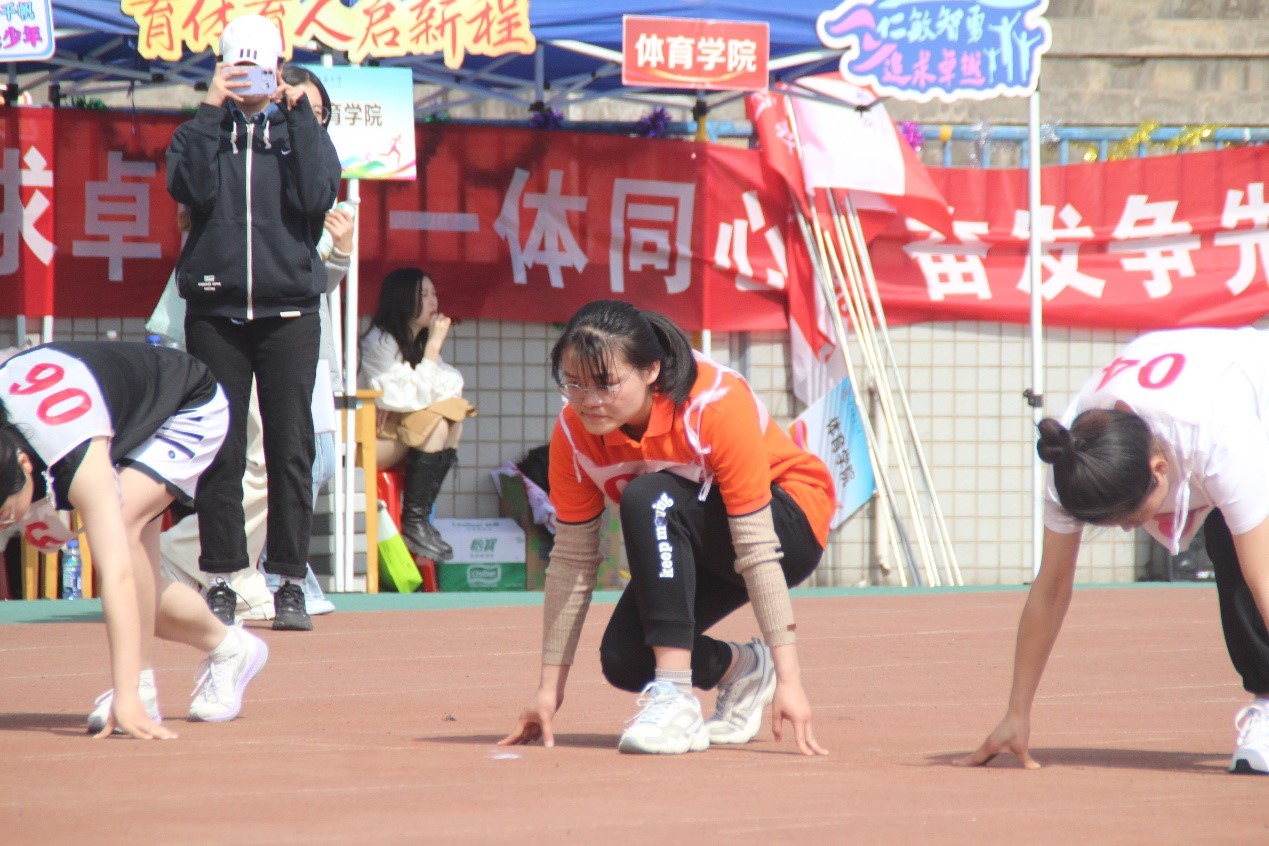 本次运动会上,我院共有40余名运动员参加了竞赛项目。在男女100米、200米、400米、4×100米和男子1500米等田径项目中,运动员们不言疲惫,在赛道上顽强拼搏,不断超越自我,怀着必胜的信念奔向终点。