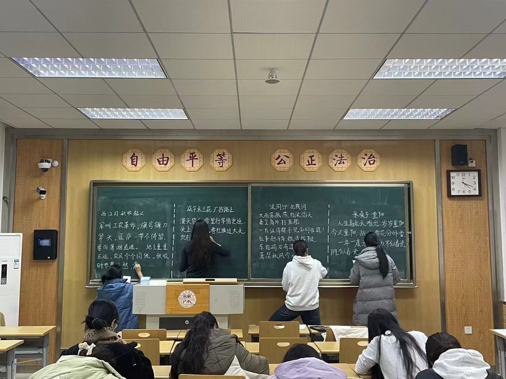本次比赛的选题充分彰显思想政治引领和中华优秀传统文化底蕴,粉笔字、硬笔字、毛笔字的内容分别选取毛主席诗词、第三个历史决议和古代七言绝句等,使学生在比赛中再次学习理解党的先进理论和中华优秀传统文化。这些选题内容有效引导学生坚定理想信念、牢记初心使命,促进学生德智体美劳全面发展。