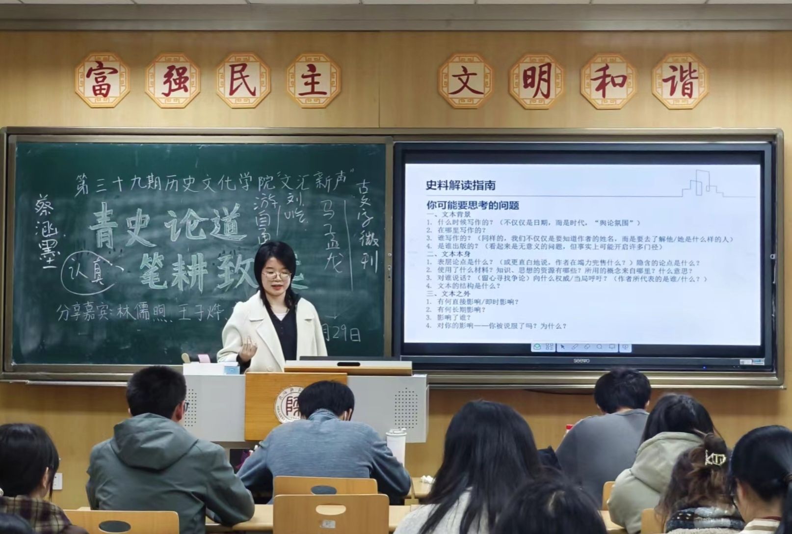 活动伊始,林儒煦结合自身阅读经历,解析历史研究中问题意识的生成路径,提倡同学们从阅读中出发,在质疑中深化。
