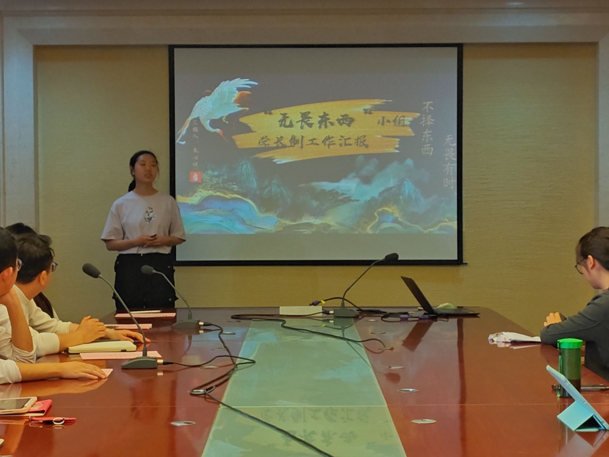 会议第二项,2023级本科生朱心悦和武彤做工作经验分享。朱心悦详细介绍了自己在大学生涯规划和学习经验分享方面的工作亮点,对学长在工作中注重五育并举、团队协作,以及新生个性化需求进行了反思和强调。武彤侧重自身角度,希望学长们坚定工作初心,作为朋辈引领者以身作则,了解和遵守学校政策制度,积极投身学习实践,热心参与校园活动,努力成为新生们学习的优秀典范,帮助新生们平稳融入大学生活。
