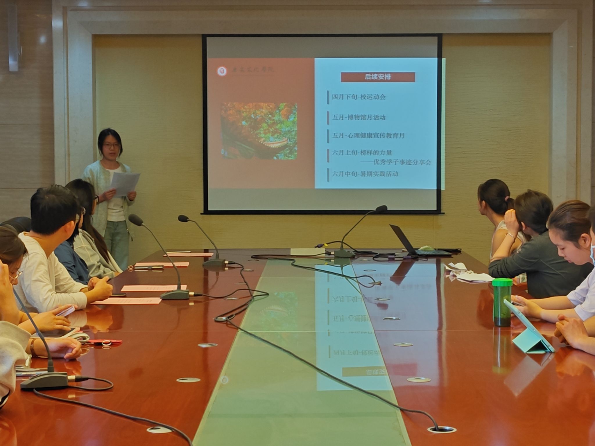 会议第三项,甘家甜代表工作小组对本届工作后续安排进行讲解说明,希望学长学姐们继续带领2024级新生积极参与接下来的各项活动,助力新生在学业之路上稳步前行,在丰富多彩的校园生活中尽情释放青春活力,提升各方面素养。