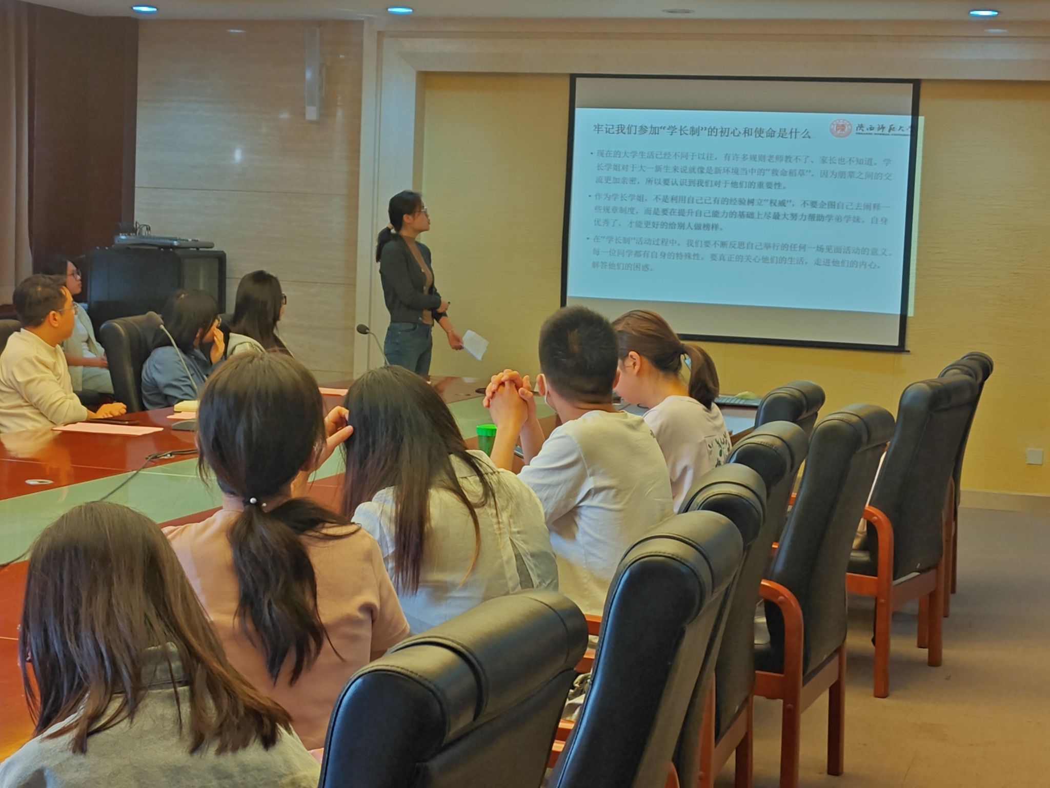 会议首先对第八届“学长制”工作做中期总结,并公布考核结果。经考核,本届54名带队学长中有16人达到A级评级,33名同学达到B级评级。随后,甘家甜代表工作小组对各位同学目前工作中存在的问题和不足进行整理分析,鼓励同学们进一步提升工作积极性和创新性,推动本届工作向上发展。