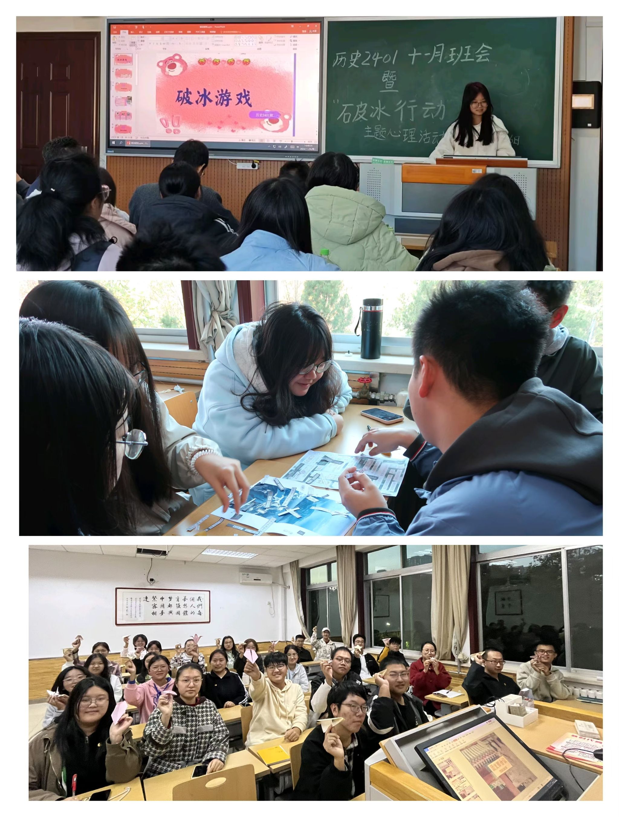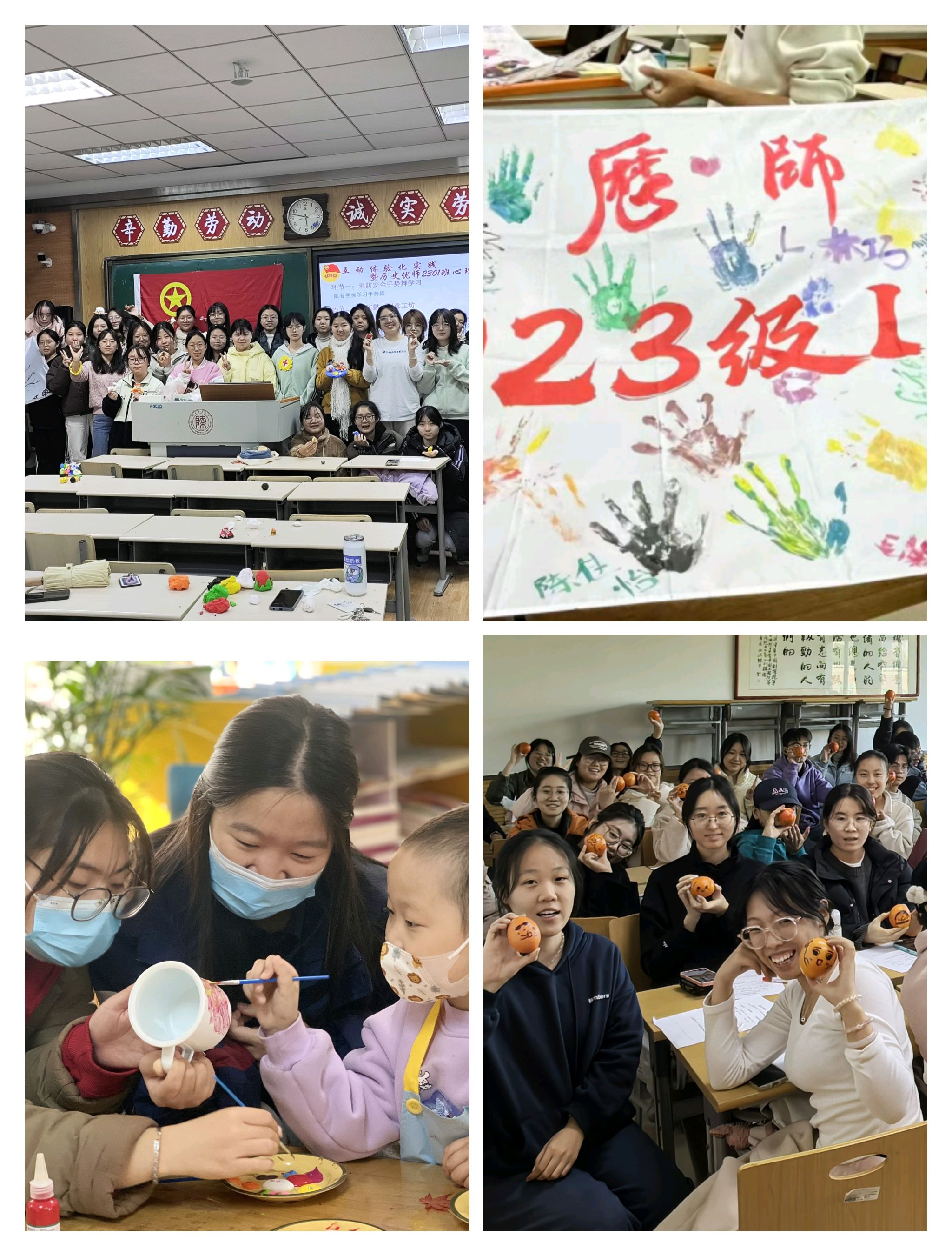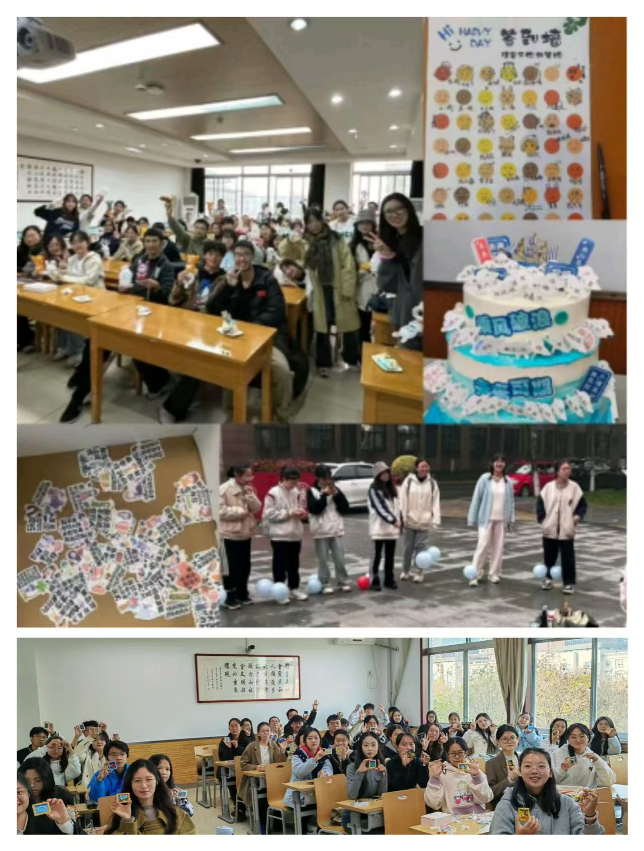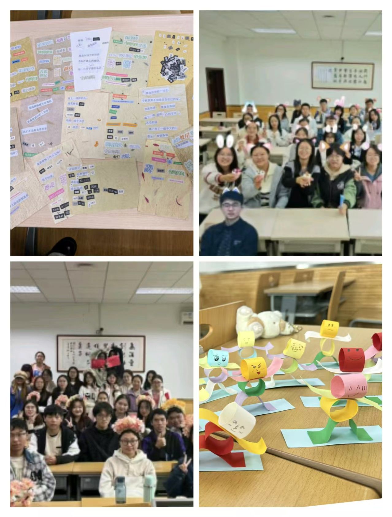各班级以心相会、温暖同行,精心组织开展了丰富多彩、有益身心的特色活动,培育了积极向上的健康心态。24级同学们开展了数字炸弹、指纹树签到、情绪盲盒、手工制作落叶书签等活动,在互动协作中增强班级凝聚力。23级同学们开展了DIY摇晃小人、纸飞机大赛、绘制班旗、校友林寻宝等活动,感悟自然魅力,拉近心的距离。22级同学们开展了“嘿,可以邀请你给生活拼首诗吗”主题制作拼贴诗活动、簪花剪纸传统文化手工活动、DIY涂抹石膏制作手串活动,在手工制作中缓解心理压力。各班紧扣人际交往、情绪管理、压力释放等心理主题,结合本班专业特色和现实困境,通过创意制作、户外游戏、团体辅导等多种形式,有效引导同学们感受生活、快乐学习。
