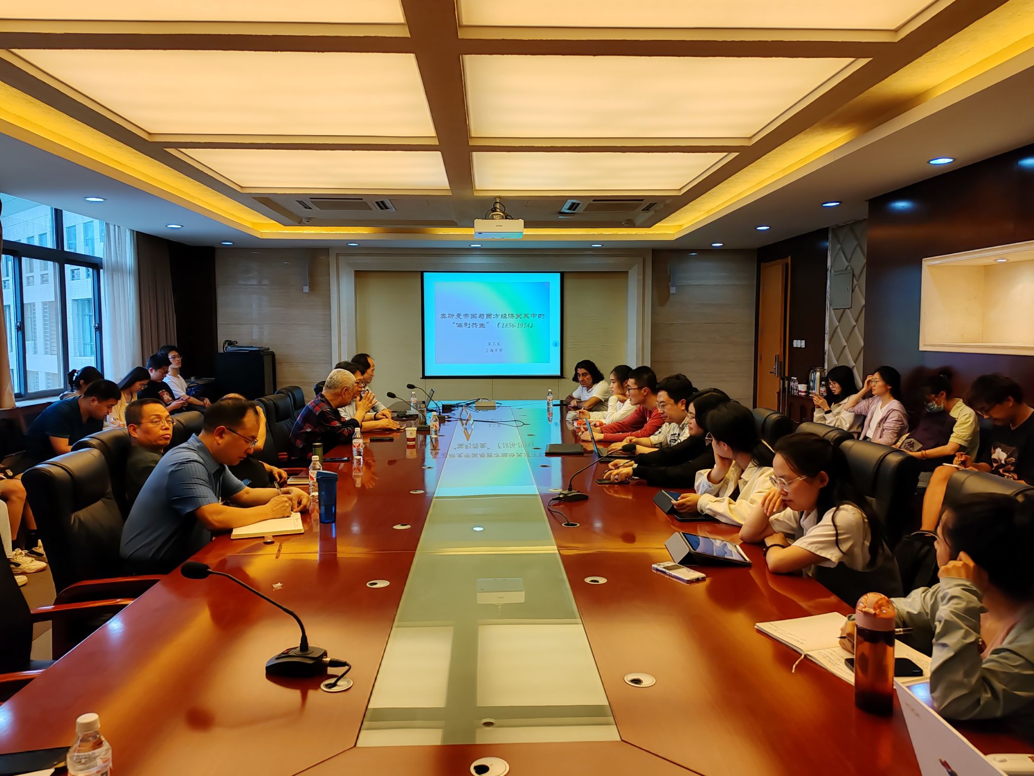 座谈会后,王三义教授作了题为《奥斯曼帝国与西方经济关系中的“偏利共生”(1856-1914)》的专题讲座。院长李秉忠教授、副院长郭响宏副教授、王成军教授、胡舶教授、宋永成教授、孙坚副教授及世界史专业研究生、本科生共计50余人参与了本次活动。王三义教授从经济“依附论”的角度对晚期奥斯曼帝国经济的基本情况进行判断,论证了奥斯曼帝国得到西方国家的援助,加工业和服务业有所发展。同学们就“偏利共生”、奥斯曼帝国医疗社会史、经济史等方面的问题与王三义教授进行了交流。