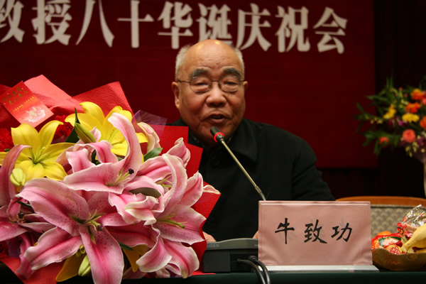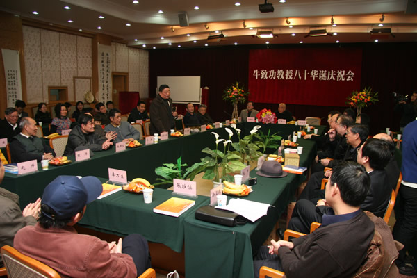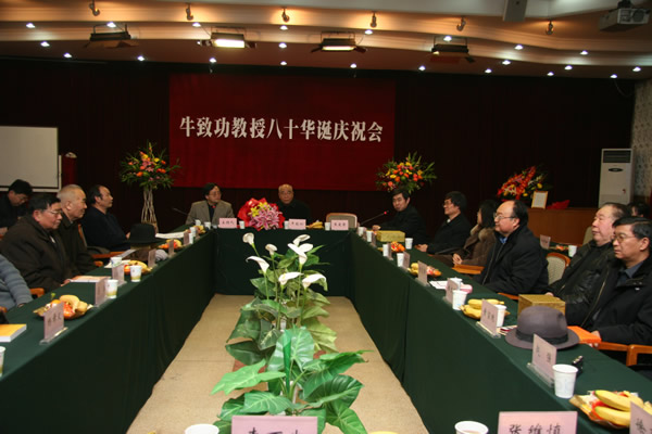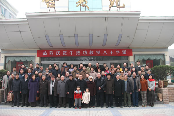 2月8日,是原中国唐史学会副会长、西安唐代文化史学会会长,我院前身历史系主任,著名唐史学家牛致功教授八十华诞的日子。来自全国各地的七十多位专家学者、牛先生的弟子及亲友等,在我校启夏苑二楼会议室举行了隆重的庆祝大会。会议由牛先生的学生王双怀教授主持,任职烟台市委组织部、中国社会科学院历史所、首都师范大学书法文化院、中国公安大学、青岛大学历史系、兰州城市学院人事处等单位的牛先生弟子们专程从外地返回母校为老师祝寿,并发表感言。参与此次活动的牛先生弟子约40余人。