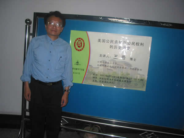 教授提出了美国白人种族歧视、美国枪击案与公民持枪问题、三K党、美国公民资格与公民权利的历史演变对中国的启示等一系列问题。