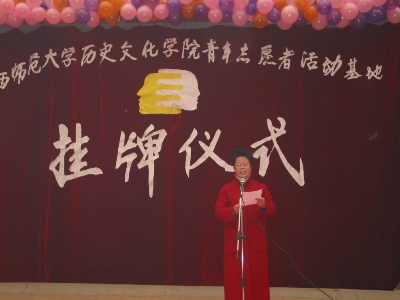 校团委书记宋传东老师也发表了热情洋溢的讲话。宋老师对活动基地的成功挂牌表示热烈祝贺。他说,开展团中央青年志愿者活动有着深远意义。它是中华民族的传统美德,是凝聚精神的活动;青年志愿者能够用自身的行动积极参与到共建和谐社会的事业中来,互帮、互助、互爱,积极奉献社会,贡献个人力量;它能使同学们更好的认识社会,服务社会,培养自己的爱心和社会责任感,实现自我价值。今天,聋哑学校为我们青年志愿者搭建了一个锻炼自我的平台, 广大青年志愿者应珍惜机会,牢记志愿精神,撒一腔热血,贡献个人力量。