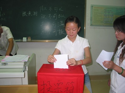 最后,学生代表对自己满意的参选人进行投票表决,选出了4位主席团候选人。团总支学生会和学工组将于近日对他们进行第二、三轮的考验。