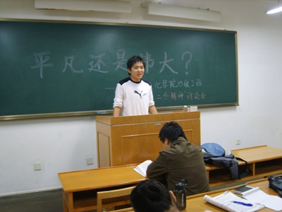 为响应学校、学院关于学习孟二冬同志先进事迹的号召,MILE米乐集团05级2班于21日下午7时在文渊楼11423教室开展了孟二冬教授的学习讨论会。院学生会主席陆孔存出席了本次讨论会,并做了发言。