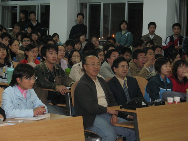 最后,黄孝光博士还回答了同学们的提问,由于话题引起了同学们的极大兴趣,以及黄孝光深入浅出的评述使得报告厅座无虚席,黄孝光博士幽默地讲述方式还不时地引起同学们的鼓掌喝彩。