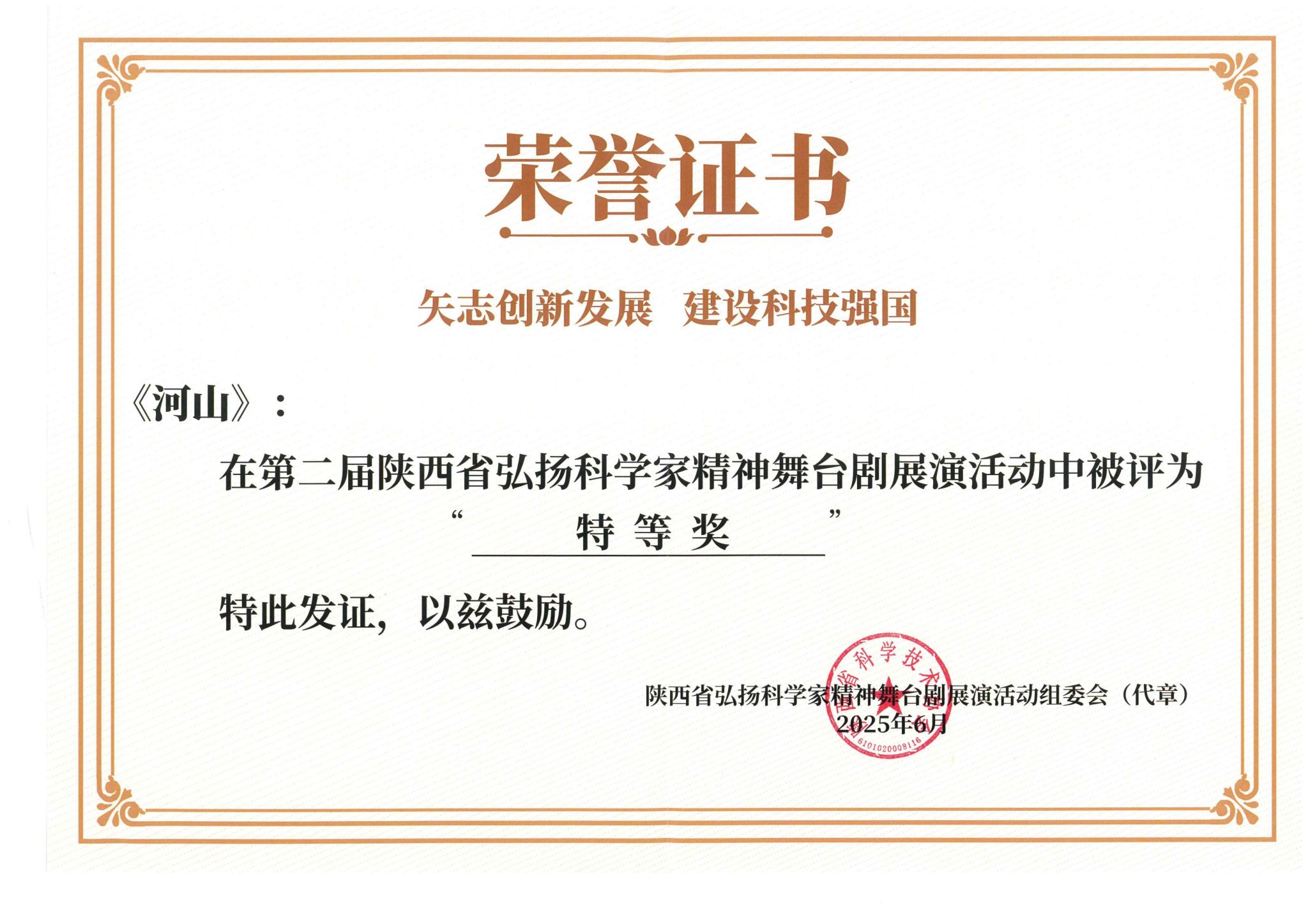 《河山》作为整个活动唯一一部以文史类学者为蓝本的剧目,以其对人文精神与科学内核的洞察震撼展演现场,以其炉火纯青的艺术感染力和独具匠心的舞台设计,为“科学家精神”的宏大叙事注入了不可或缺的思想厚度与人文温度,成功在众多剧目中脱颖而出荣获特等奖。